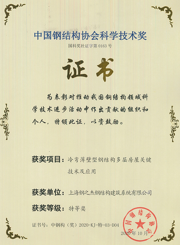 鋼結(jié)構(gòu)協(xié)會科學(xué)技術(shù)特等獎
