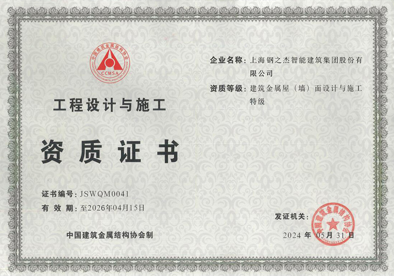 建筑金屬屋(墻)面設(shè)計與施工特級資質(zhì)