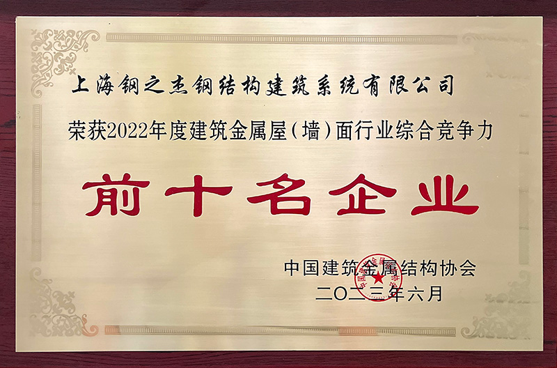 全國金屬圍護(hù)系統(tǒng) “十強企業(yè)”