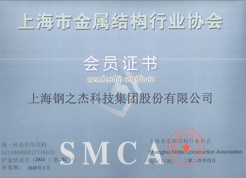 上海市金屬結(jié)構(gòu)行業(yè)協(xié)會會員證書